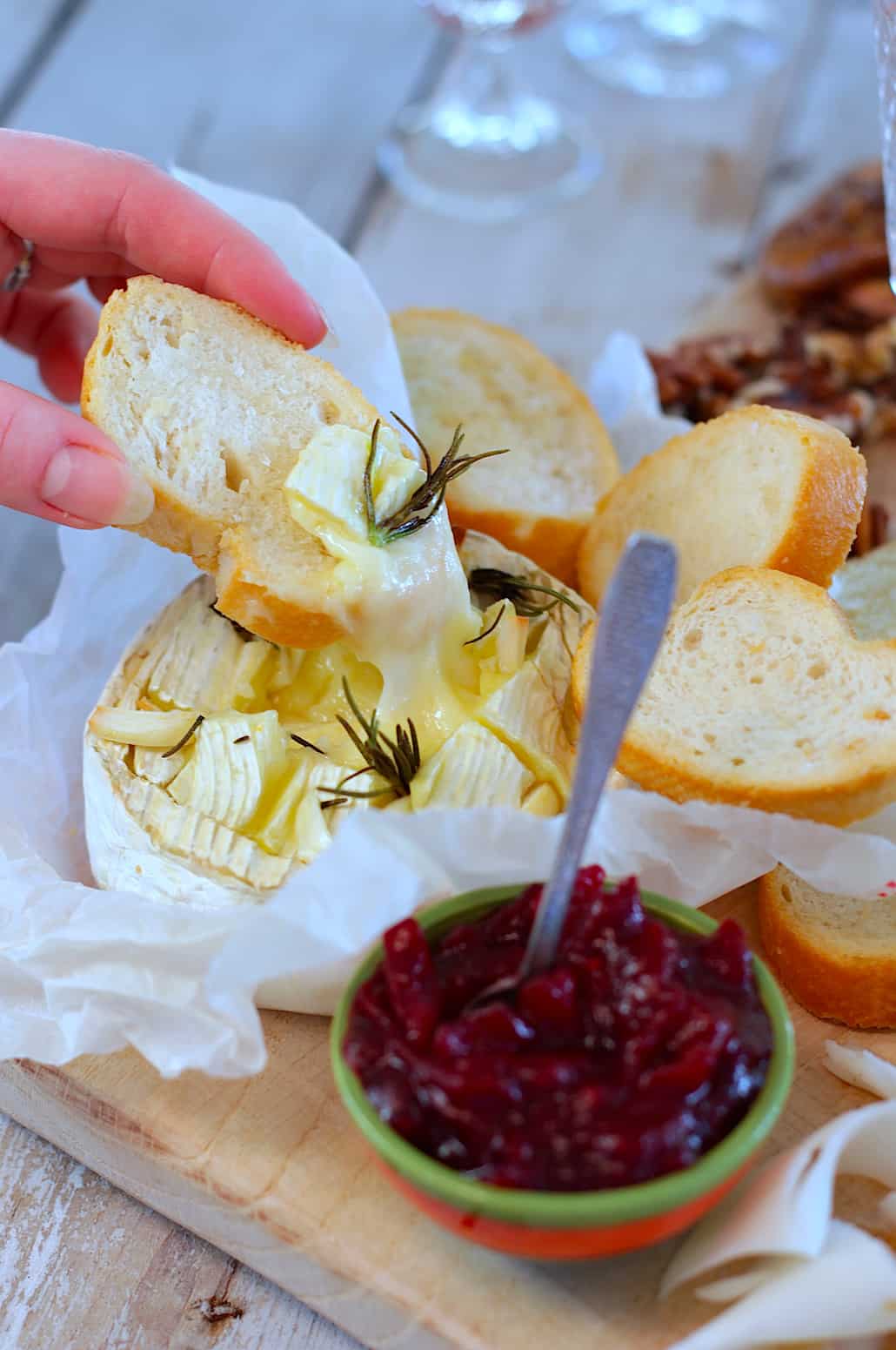 Camembert is een van mijn favoriete kazen. Met gewoon een plakje op een stukje stokbrood maak je me al blij. Nog blijer werd ik echter van het dopen van m’n broodje in een heuse camembertfondue mét cranberrycompote. Qua presentatie ook nog eens erg leuk dus zeer geschikt op de feestelijke kaasplank.