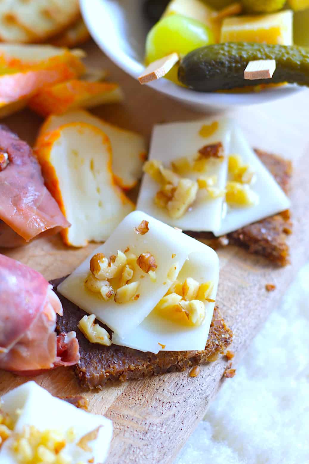 Zoals velen zijn wij ook dol op geitenkaas. Zowel in de zachte als de harde variant. Voor een kaasplankje vinden we de harde variant het meest geschikt, anders wordt het zo’n smeerboel. Alhoewel je daar ook een lekkere dip mee kunt maken. We maakten ook hier weer een feestje van en serveerden de geitenkaas op plakjes roggebrood met een beetje honing en wat geroosterde en vervolgens fijngehakte walnoten.