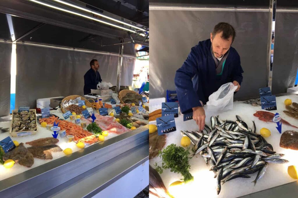 We begonnen op de vismarkt en vismarkten vind ik sowieso altijd een beleving in het buitenland. Zoveel verse vissoorten en ook vele schelpdieren waren er te vinden. De chef kocht wat verse sardines, maakte een praatje met de visboer en we gingen door naar het groente en fruit. De chef had zijn favoriete marktkramen voor bepaalde producten en maakte vrolijk met iedere markthouder een praatje. Hij vertelde mij dat je vooral moet letten op de kratten. Zijn deze van plastic dan weet je dat de marktraam lokale producten verkoopt, alles in houten kratten en dozen komt vaak van buiten de regio.