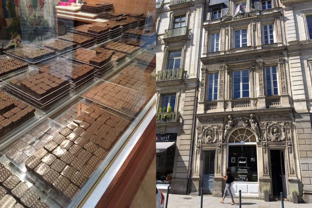Naast de fantastische markt valt er nog veel meer culinair te ontdekken in Rennes. Zo ging ik op foodtour langs een aantal heerlijke winkels. Een van die winkels was chocolatier Durand. Walhalla voor chocoladeliefhebbers zoals ikzelf. De goddelijke bonbons die ze daar maken worden allemaal bestempeld met een nummer. Dat nummer staat voor de vulling van de bonbon en zo zijn er maar liefst 43 soorten. De smaken zijn uiteenlopend van klassieke Bretonse smaken zoals gezouten karamel tot aan bijzondere combinaties zoals witte chocolade, basilicum en limoen. Ik mocht wat nummertjes proeven en raakte de tel snel kwijt. Te lekker deze chocolade!