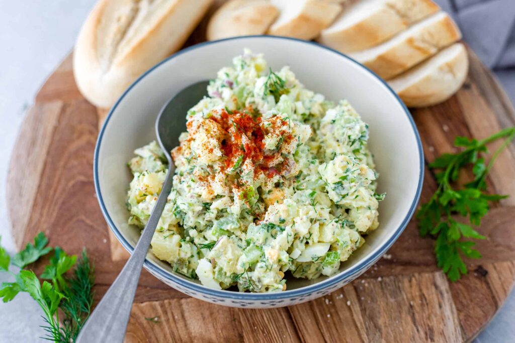 - 1 el bieslook, fijngehakt + extra voor garnering