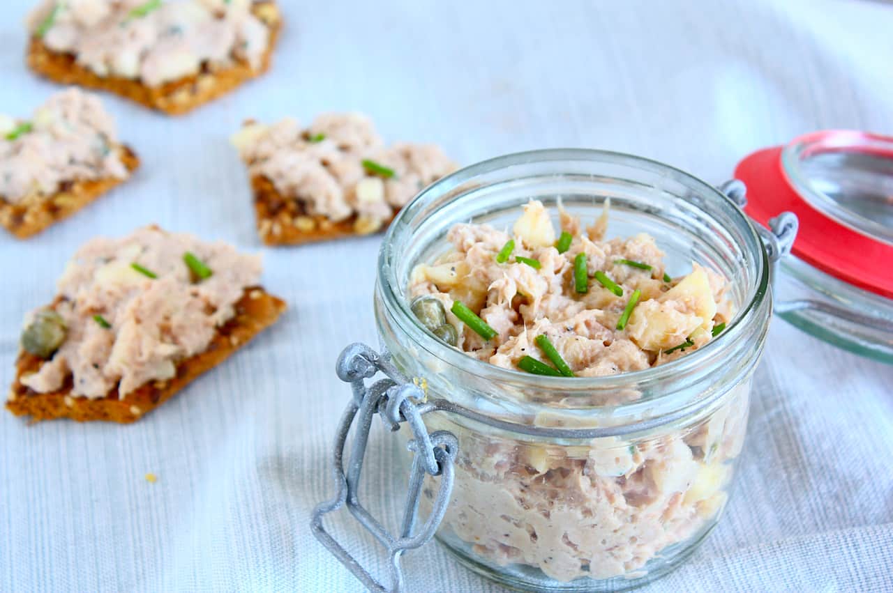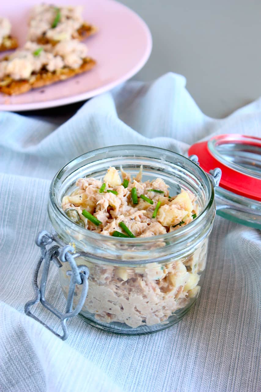 Deze tonijnsalade met Griekse yoghurt is een van mijn favoriete salades voor op brood of een cracker. En wat mij betreft veel lekkerder dan de supermarkt tonijnsalade. Geniet ervan!