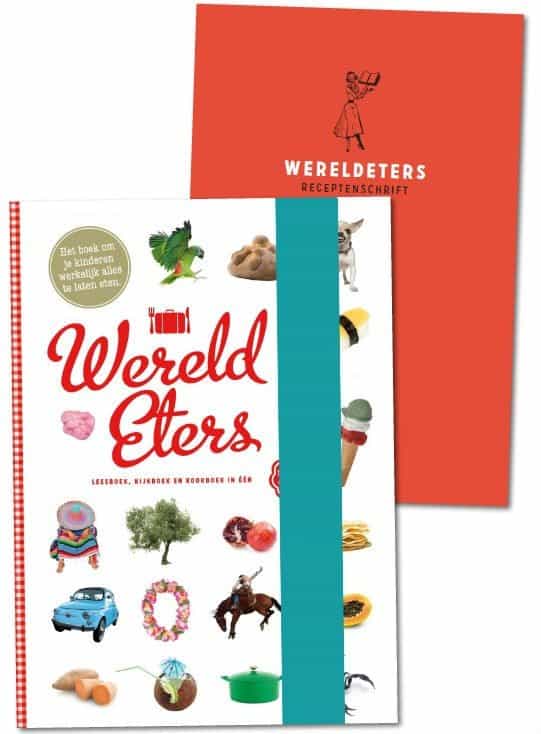 En dan mijn nieuwe favoriet! Auteur Marjolein had een uitdaging met haar eigen kinderen, want die aten zo lastig. Een probleem wat we als ouders allemaal kennen. Daar bedacht zij een hele creatieve oplossing voor. Ze selecteerde diverse landen uit de wereld en ging daar uit koken. Aan tafel vertelde ze de verhalen over het land erbij, leuke wetenswaardigheden en liet er leuke foto’s bij zien. Zo wordt het avondeten een heuse wereldreis. In haar boek Wereldeters komen tal van landen aan bod; onder andere Spanje, Japan, India, Mexico en zelfs Suriname. Leuk detail is het paspoort en de landenstickers waarmee je kinderen kunt belonen als ze goed hebben gegeten.
