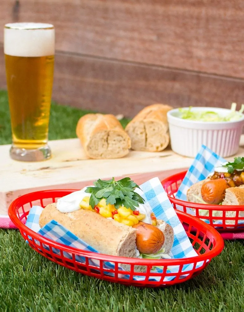 Bereid de rest van de ingrediënten voor, zodat de hotdogs direct samengesteld kunnen worden als de worsten klaar zijn.