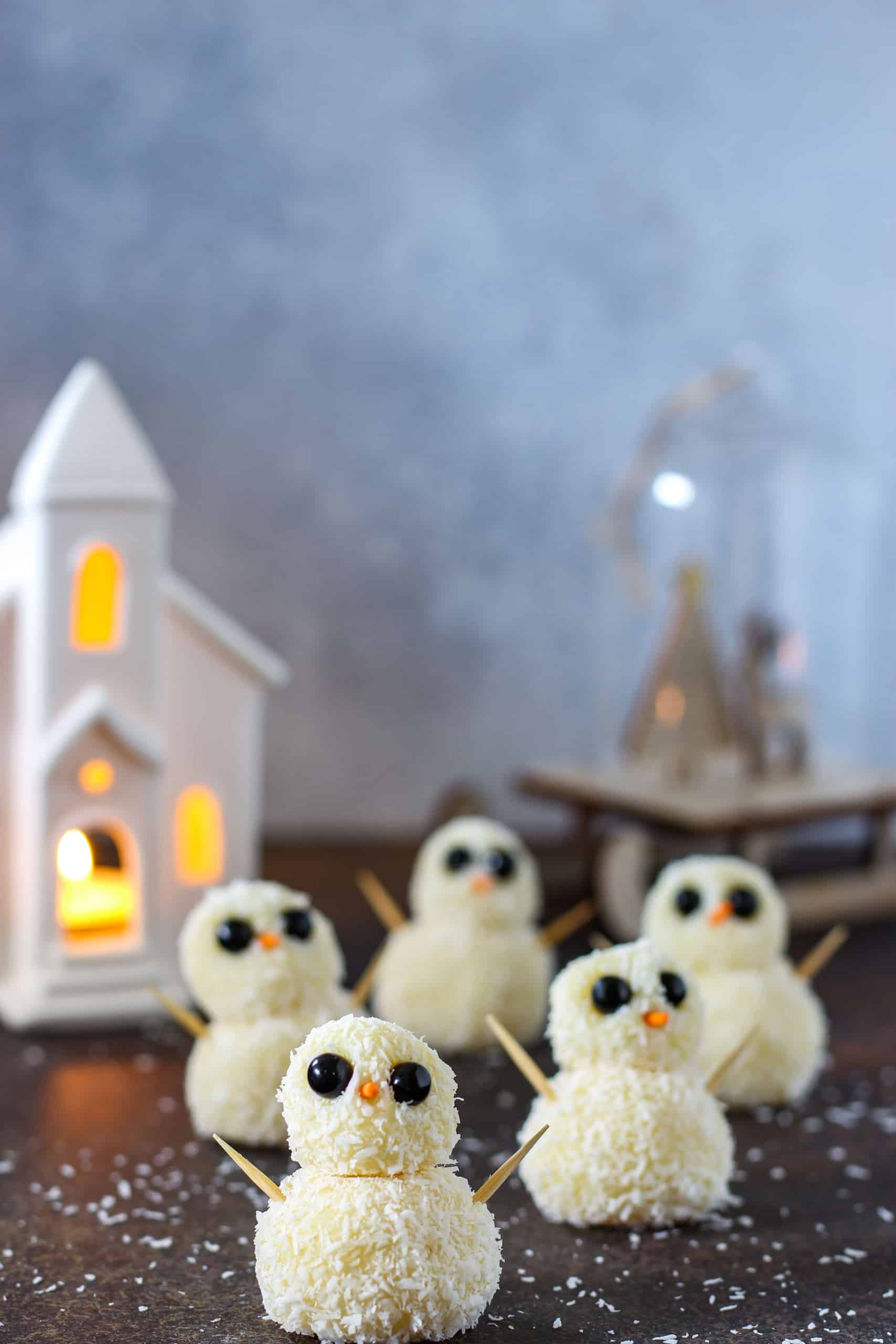 Je kunt deze truffel sneeuwpopjes ook samen met kinderen maken, dat vinden ze heel leuk om te doen en het is verre van ingewikkeld.