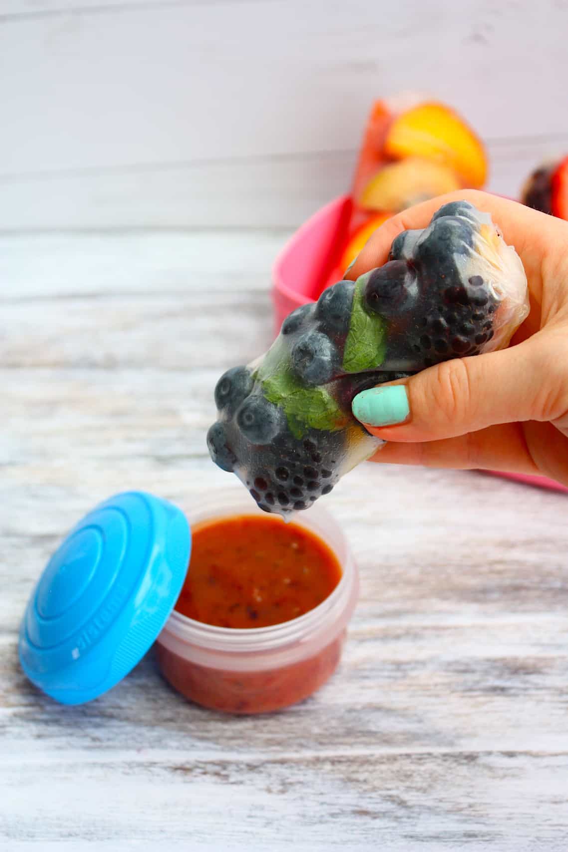 In het midden van Nederland zijn de schoolvakanties vanaf vandaag weer voorbij. De overige delen van Nederland hebben nog eventjes, maar ook daar is het einde van de vakantie in zicht. Tijd voor wat inspiratie voor in de broodtrommel en dat zijn deze fruit summer rolls geworden.
