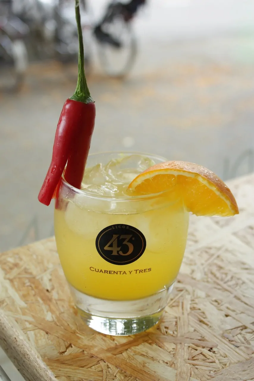 Vul een cocktailshaker voor de helft met ijsblokjes, vers sinaasappelsap, Licor 43 en de rode peper. Shake dit kort (5-10 seconden) en schenk de inhoud daarna via de zeef in een glas wat je alvast voor driekwart hebt gevuld met ijsblokjes. De rode peper blijft achter in de shaker, die heeft het werk al gedaan door wat lichte pit te geven aan de Licor 43 en sinaasappelsap. Schenk het glas tot net onder de rand vol met ginger beer. Garneer het glas met de overgebleven rode peper en een schijfje sinaasappel en serveer.