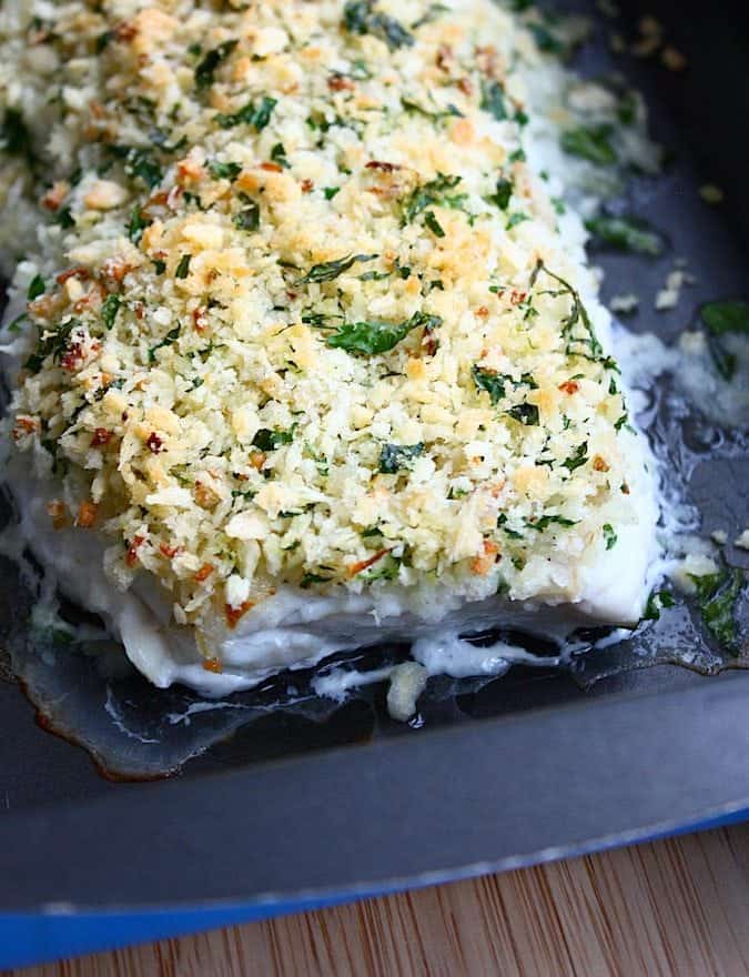 Confession: ik was vroeger als kind dol op Iglo Vis cuisine. Je weet wel, die rechthoekige stukken vis met spul erop die je vervolgens zo in de oven kunt schuiven. Inmiddels ben ik al jaren afgekickt van deze onmogelijke verslaving en heb het eigenlijk nooit meer gegeten. Ook niet zelfgemaakt. Tot afgelopen week, ik had opeens zin in vis met een korstje. Nou is het korstje van de Vis cuisine geen korstje (en heet het opeens Fishcuisine zie ik net), maar meer een papje en dat was precies waar ik geen zin in had. Ik wilde een kabeljauw met een korstje inclusief een echte crunch voor een mooi contrast met de zachte vis. En dan ook nog eens zo bereid dat mijn kleine jongen er ook van kon genieten. Gelukt hoor, groot en klein werden er blij van in huis en mijn kleine jongen riep “Mmmm, mama dit is echt heeeeeeeeel lekker!”. Dan weet je wel genoeg.