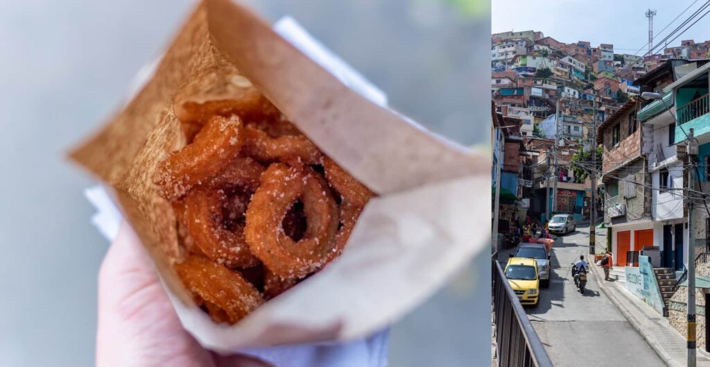 De hele stad is me eerlijk gezegd een beetje tegen gevallen. Ik liep er toch niet echt op mijn gemak, het idee dat Medellin tot voor kort nog de ‘moordhoofstad van de wereld’ was gaf me niet echt een lekker gevoel. De ‘veilige’ wijk El Poblado was ook niet echt geweldig, hier komen dus echt alleen maar toeristen en vind je bijpassende restaurants. Wat wél heel lekker is in heel Colombia, dus ook in Medellin, is streetfood! Daar heb ik dan ook maar op geleefd de dagen hier: pasteitjes met aji, empañadas en churros.