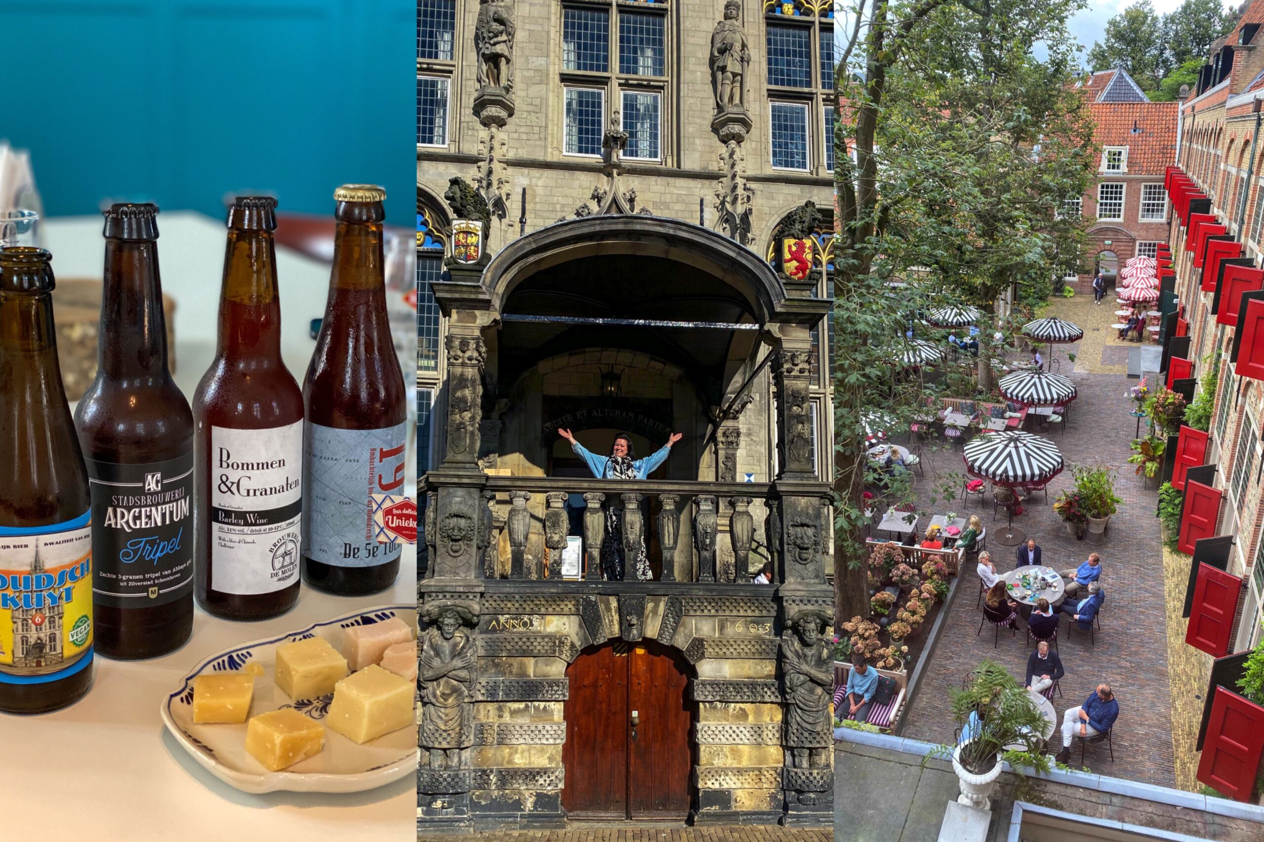 Tip! In De Goudse Waag kun je een bier-kaasproeverij boeken in combinatie met een rondleiding en dat is een geweldige ervaring tijdens een weekendje Gouda. Niet in de laatste plaats omdat ik daar ontdekte dat Gouda vroeger rijk en beroemd is geworden door bier. Ja, dat lees je goed. Het zijn niet alleen de kazen die de stad welvaart hebben gebracht. Sterker nog, in de late middeleeuwen stond Gouda bekend als dé bierstad van Nederland. Nog steeds worden er veel Goudse speciaalbieren gebrouwen. En in de proeverij worden die gecombineerd met de echte Goudse kazen. Ik ben persoonlijk niet eens zo’n bierliefhebber, maar heb echt genoten van de combinaties die ik proefde. Een wijn-kaasproeverij kun je trouwens ook boeken. Alle informatie erover vind je op de site van De Goudse Waag en daar kun je ook gelijk de proeverijen boeken.
