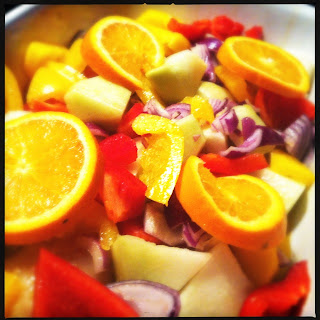 Pak een ovenschaal en vet deze in met olijfolie. Leg de kipfilets erin. Snijd de paprika’s, koolrabi en rode ui in grove stukken en leg al deze groenten over de kip heen. Sprenkel hier wat olijfolie over en wat zout. Snijd als laatste de sinaasappel in plakken en leg deze over de groenten heen.