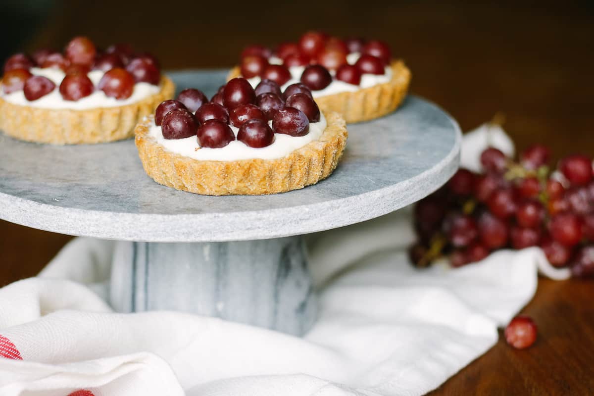 - Garneer de witte chocolade tartelettes met druiven en geniet!