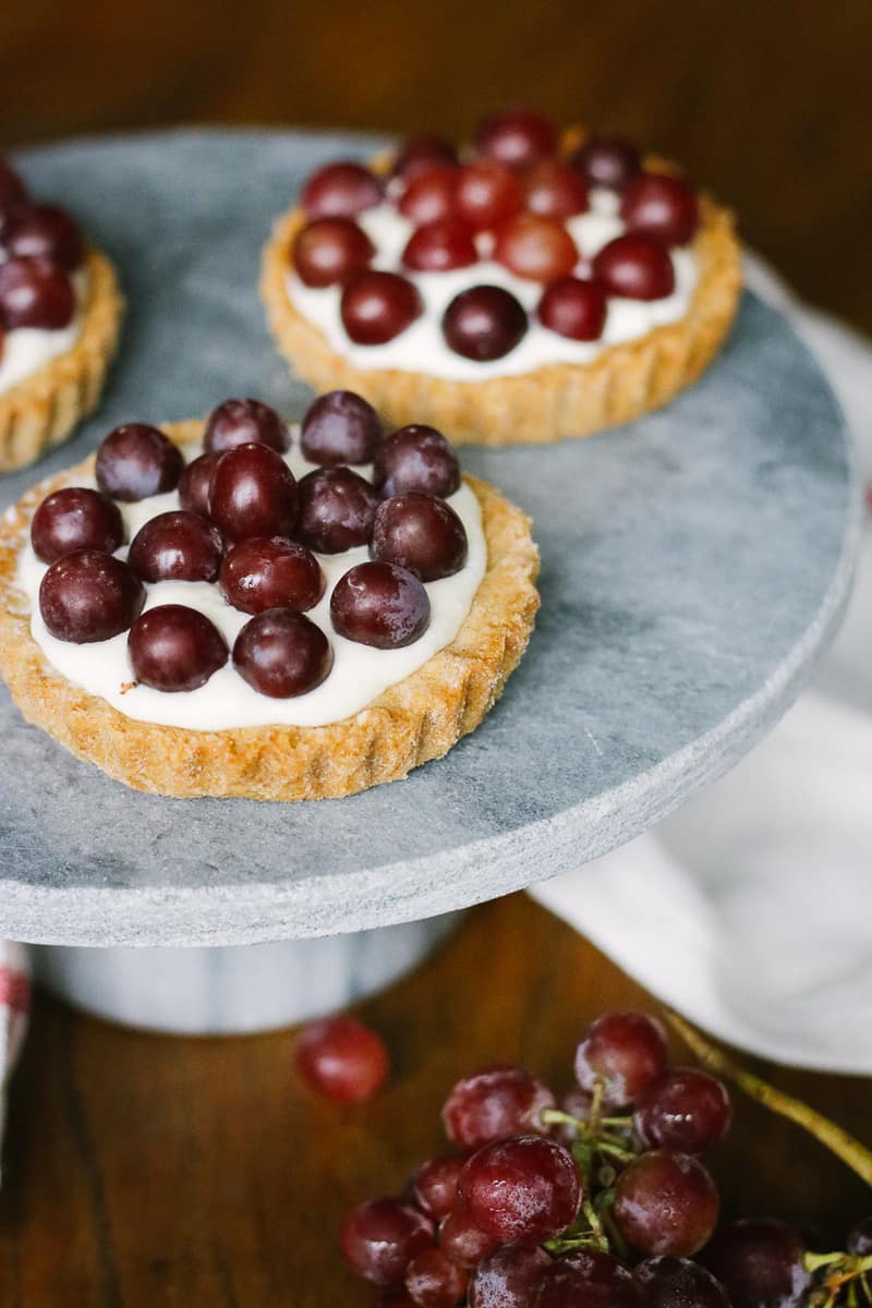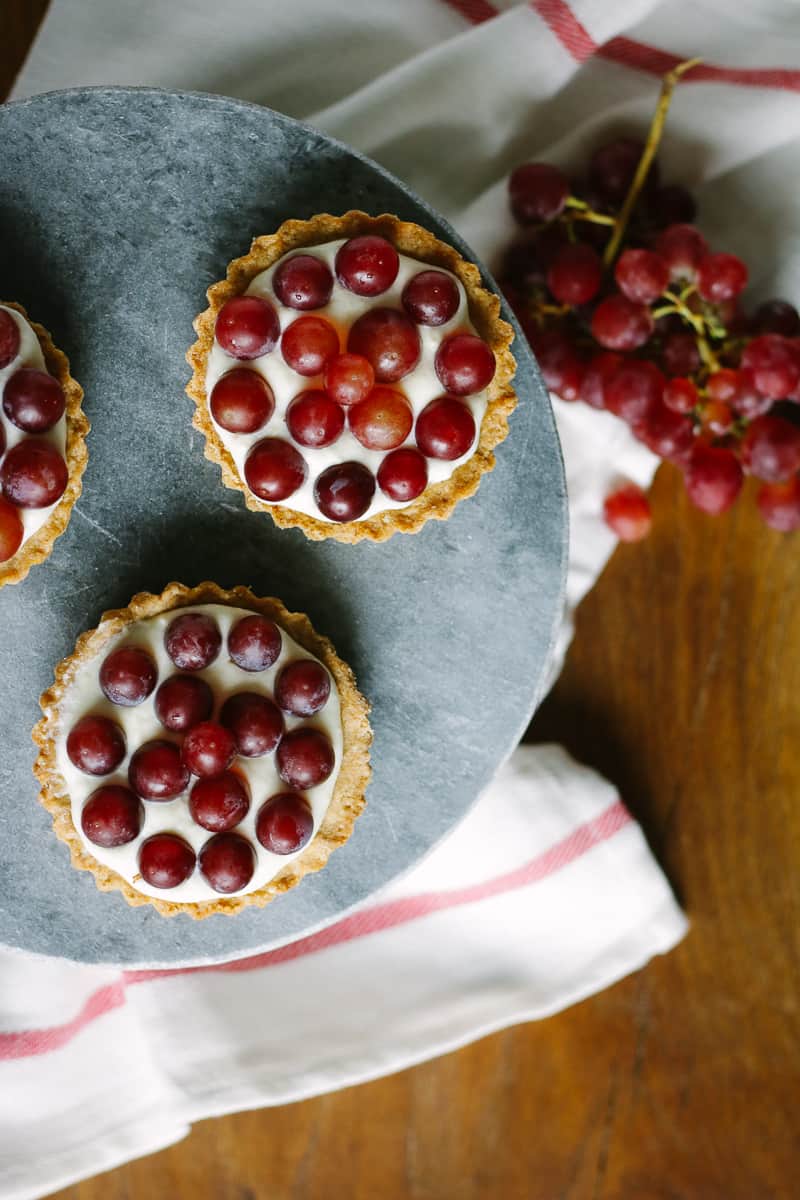 - Garneer de witte chocolade tartelettes met druiven en geniet!