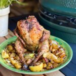 Serveer met de groene salade en geniet van deze hele kip van de barbecue!