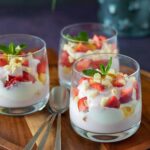 Ontbijt trifle met kwark en aardbeien