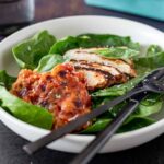 Een heerlijk recept voor gegratineerde cannellini bonen uit de oven met balsamico kipfilet en een spinaziesalade. Om je vingers bij af te likken.