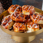 Deze smeuïge kaneelbroodjes maak je heel makkelijk van een rol croissantdeeg. Ze zijn rijk gevuld met kaneelsuiker, gedroogde abrikozen en pecannoten.