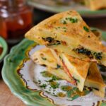 Ik gebruikte het basisrecept van een Spaanse tortilla en voegde daar nog ui, spinazie en chorizo aan toe voor een extra gevulde tortilla.