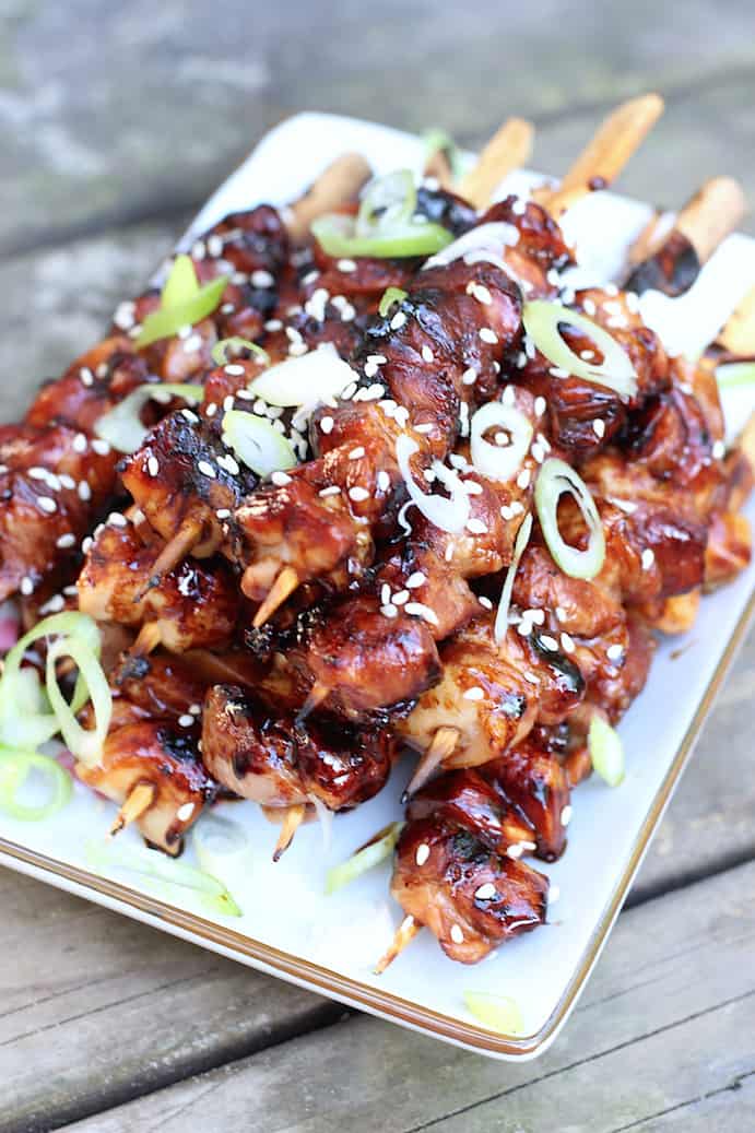 Grill de spiesjes gaar op de barbecue of grill en lak ze zeker een keer of 8 af met je stroperige mengsel terwijl ze aan het garen zijn. Hoe meer, hoe beter is mijn allerbeste advies in deze.