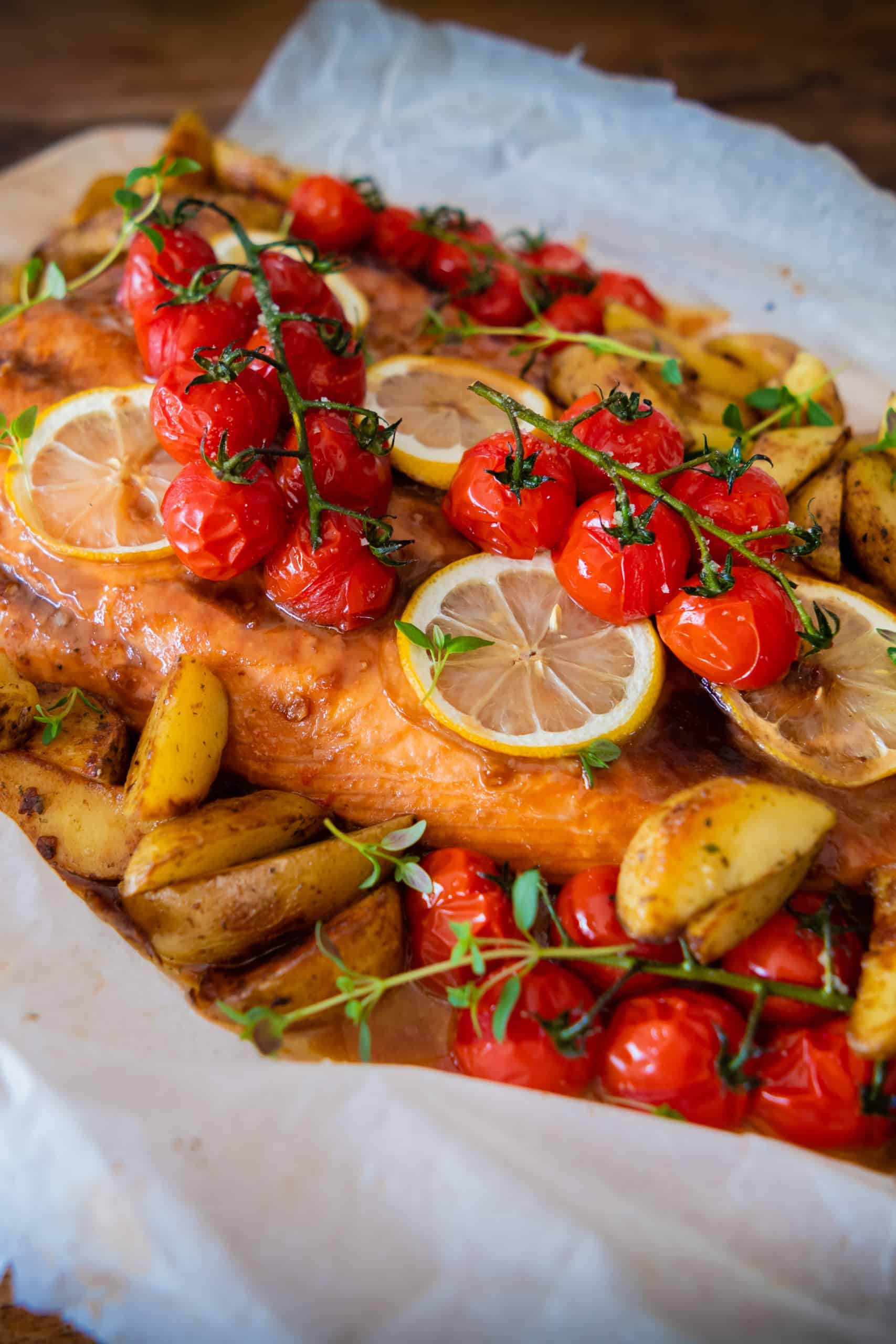 Eerlijkheid gebied me te zeggen dat deze zalm uit de oven al bijna een jaar voor jullie klaar staat om te publiceren. Geen idee waarom ik het nog niet eerder heb geplaatst, want deze gerecht met balsamico, cherrytomaten en citroen is zalig! En zo ontzettend makkelijk om te maken. Een ideaal hoofdgerecht voor een speciaal etentje wat niet kan mislukken. Geniet ervan!