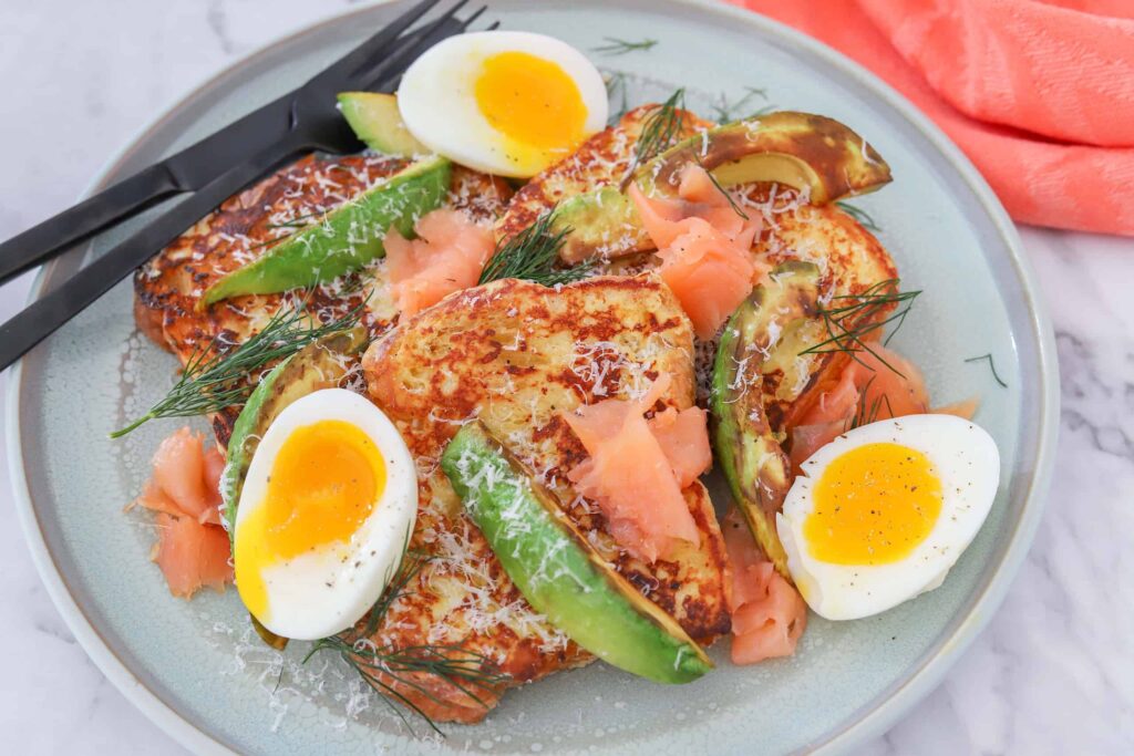 Voor een broodje met zalm en avocado mag je me altijd wakker maken, zeker tijdens feestdagen! Of misschien wordt het automatisch wel een feestje als je deze brioche wentelteefjes met avocado, zalm en ei maakt, dat kan natuurlijk ook ;-). Ik had nog een half briochebrood in de broodtrommel liggen