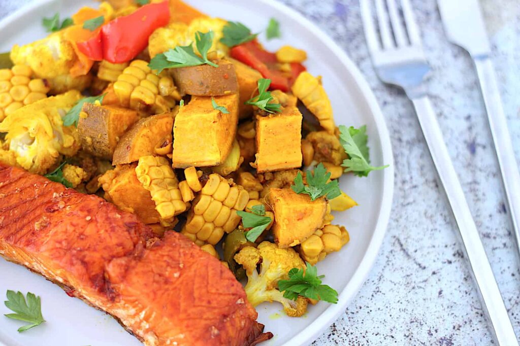 Zalm uit de Airfryer met krokant korstje en pompoen hasselback
