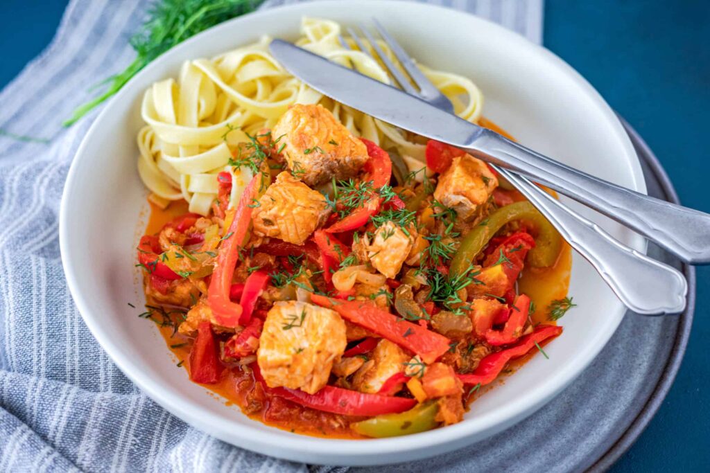 Visliefhebbers opgelet! Vandaag zet ik een heerlijk vispotje met zalm, tonijn en tagliatelle op het menu. Die eigenlijk heel spontaan ontstond toen ik nog wat groenten en zalm over had en daarmee iets lekkers wilde maken. Gecombineerd met onder andere tagliatelle, visconserven, kruiden en specerijen uit de voorraadkast werd het