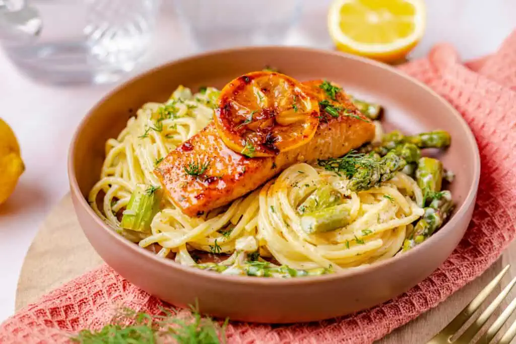 Gezonde bami met zalm, paprika, paksoi en boerenkool