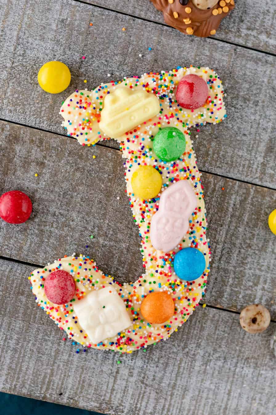 - Leg in de tussentijd je bakpapier met letter outline en alle decoratie die je wilt gebruiken klaar.