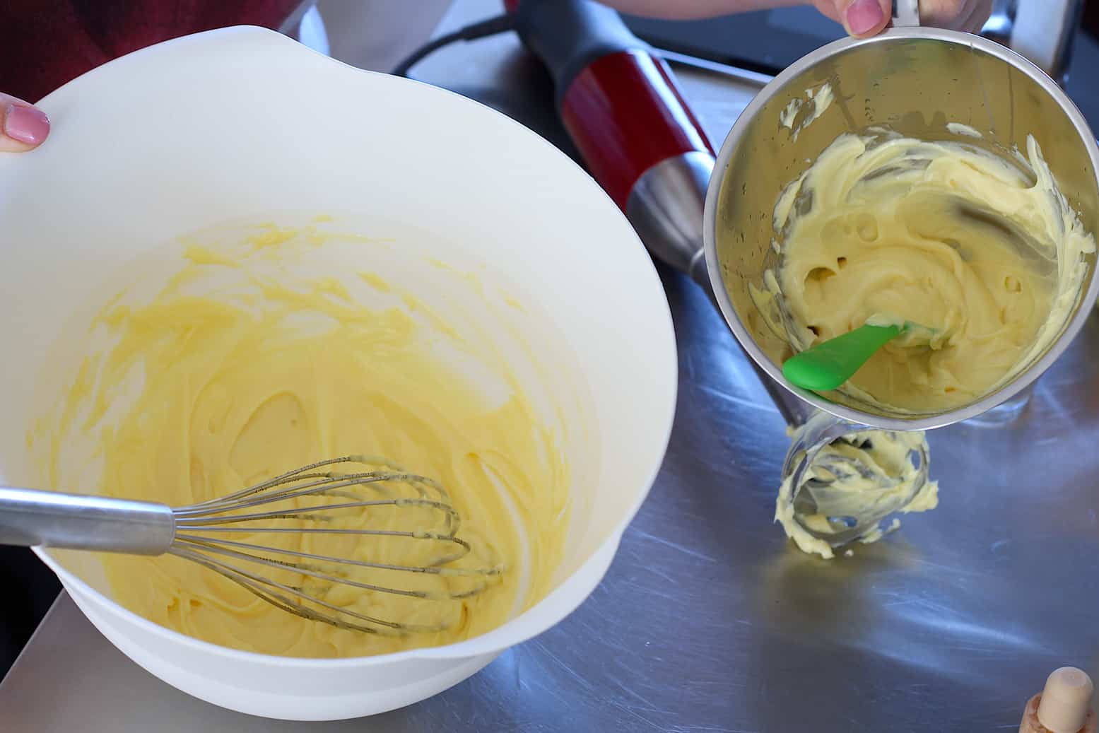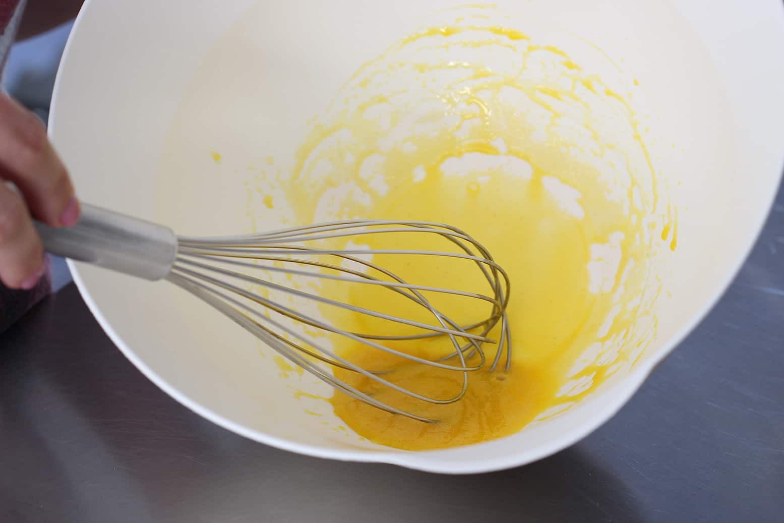 Naast met de hand met de garde kun je deze manier ook toepassen met de (hand)mixer met bolgarde op een niet te hoge stand.Â