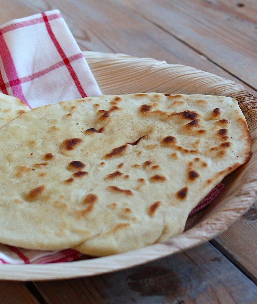 Serveertip: naan smaakt geweldig bij homemade hummus of andere dip. Heb je wel eens een naanpizza gegeten? Beleg daarvoor de naan met je favoriete ingredienten en bak daarna nog even kort in de oven. Mijn favoriet is met peer, gorgonzola en rucola. En natuurlijk serveer je het bij een flinke kruidige stoofschotel of bij dal, lekker om te dopen!