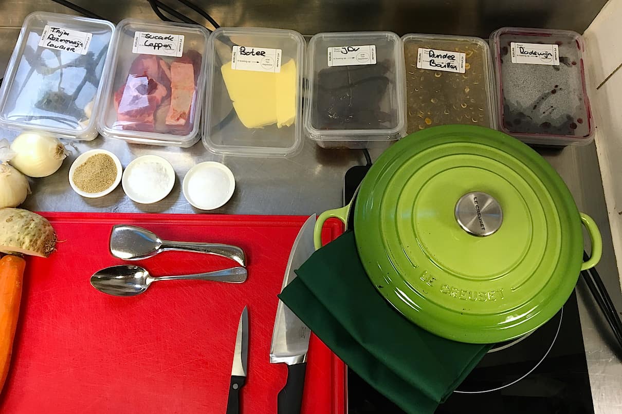 Het begint allemaal bij de basis en dus bij dat je de juiste ingrediënten in huis haalt. Ga bij je slager langs en vraag om lokaal rundvlees wat zich goed laat stoven.