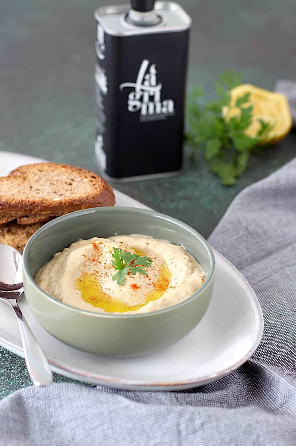 - Serveer de baba ganoush met een scheutje olijfolie extra vergine, snufje gerookt paprikapoeder en wat platte peterselie ter garnering.