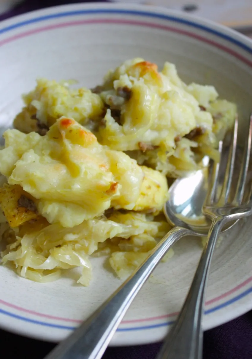 Een heerlijke variatie op zuurkool met gehakt. Combineer met kerrie en ananas en gratineer deze ook nog even in de oven.