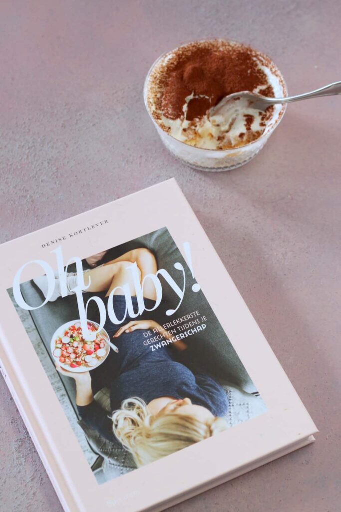 Natuurlijk testte ik ook een recept uit het boek en dat werd de zwangerproof tiramisu. Door de rauwe eieren en alcohol is een traditionele tiramisu volledig niet geschikt. Maar daar bedacht Denise een heerlijke variant voor waarin ze gebruik maakte van aquafaba. Dat is het vocht uit een blikje kikkererwten wat je volledig kunt opkloppen zoals eiwit. Het lijkt er zelfs zo op dat je er ook meringues en mayonaise mee kunt maken. Een ideale plantaardige vervanger dus.